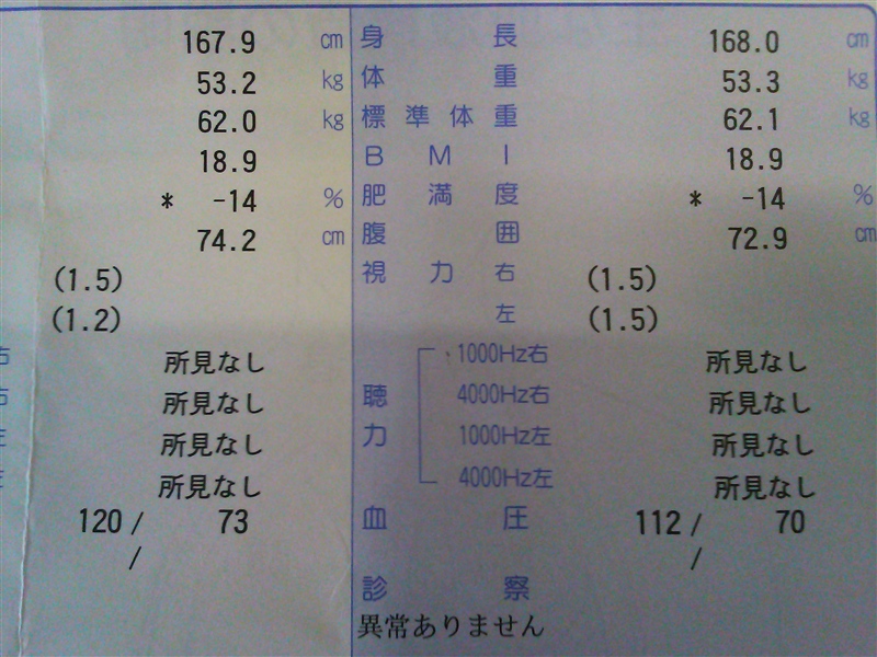 左が今回、右が前回。身長が1mm縮んだのは老化現象?