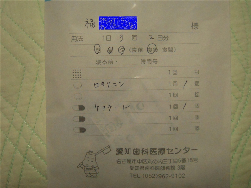 木、金と歯科で治療してもらったが悪化。土曜日は痛みを我慢して日曜日愛知歯科医療センターへおてあげだから月曜日、愛知学院に行きなさいって言われ痛み止めと抗生物質でなんとか痛みが和らいでる。