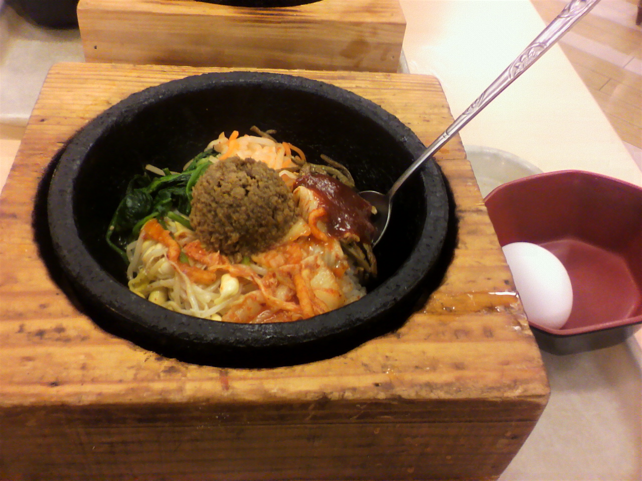 石焼ビビンバ食べた自分でタマゴ割って入れた