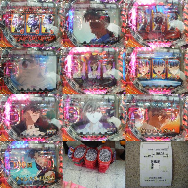 今日はCRエヴァ4で加持全回転、カヲル全回転、カヲル背景、タイトル予告「終わる世界」とかのプレミアム出した。13連荘だ。暴走モード、綾波レイ覚醒モードばかりだった。